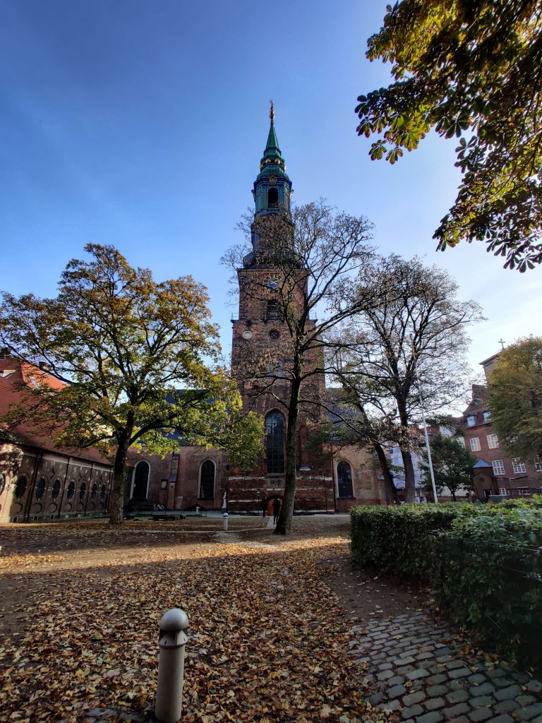 Die deutsche Kolonie in Kopenhagen wird erstmalig im 14. Jahrhundert erwähnt, als sie ihre eigene Gilde, genannt „die Heilige Dreifaltigkeitsgilde“, hat. Sie hat ihre eigene Kapelle entweder in der „Vor Frue kirke“ oder im „Gråbrødreklosteret“. Kurz vor dem Jahre 1500 bekommt die Gilde ihr eigenes Haus in der Fiskestræde (dem jetzigen Amagertorv 42-43)