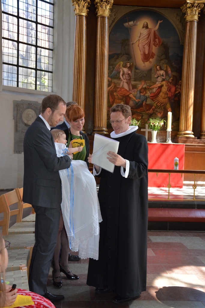 Für die Taufe brauchen wir die Information, welche Kirchengemeinde den Geburtsschein (oder aber den Namensschein/navneattest) ausgestellt hat. Alle weiteren Fragen können dann im Taufgespräch geklärt werden.